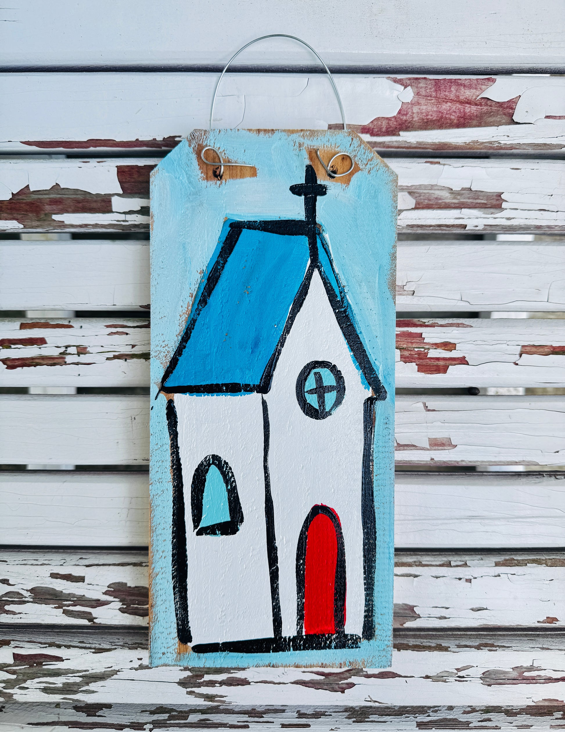 Blue Church on Wood